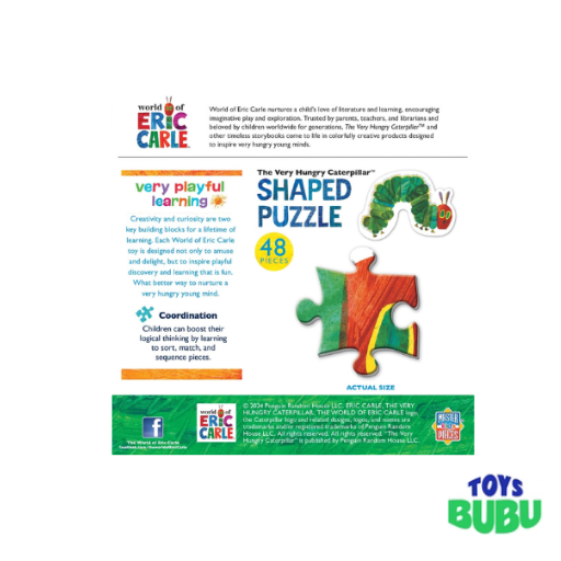Discover the joy of learning and play with the Eric Carle – The Very Hungry Caterpillar 48-Piece Shaped Puzzle!